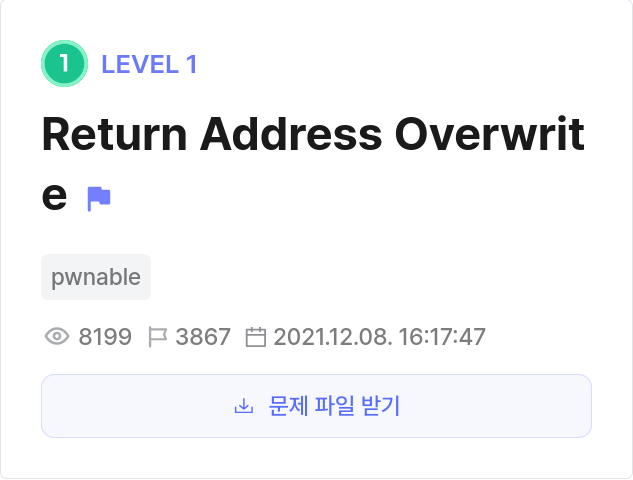 이 문제는 간단히 입력을 받아 복귀 주소를 get_shell 함수의 주소로 수정하여 익스플로잇하는 문제이다. 이 문제에서는 쉘을 실행시켜주는 get_shell 함수가 있으며 이 함수의 주소를 복귀 주소에 넣어주기만 하면 된다.